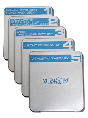 The VitalStim Education Suite and Passport to Certification is a multiple CD set designed to give the physician or SLP all required information toprovide VitalStim Therapy to their patients.
